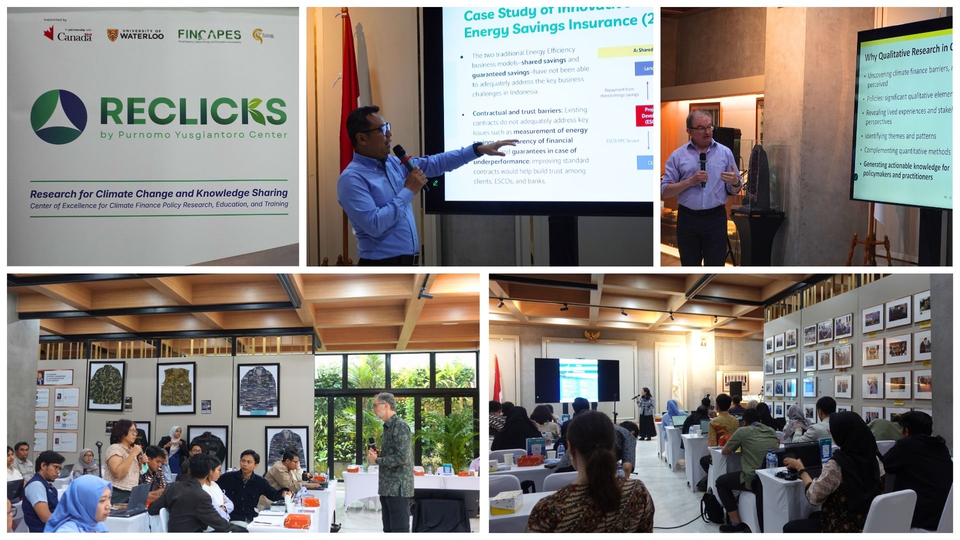 The short course forms part of the Climate Change Knowledge Sharing (CLICKS) platform and serves as a capacity-building gateway for prospective applicants to the RECLICKS Call for Proposals 2026. Participants explored Indonesia’s climate finance architecture, policy instruments, and research gaps, complemented by applied sessions on data-driven methods, impact evaluation, and policy-relevant research design. Sessions were led by national and international experts, including M. Ery Wijaya (Lestari Advisors), Brent Doberstein (University of Waterloo), and Stefan Steiner (University of Waterloo), highlighting how rigorous, policy-facing research can better inform decision-making and mobilize finance for a just energy transition.